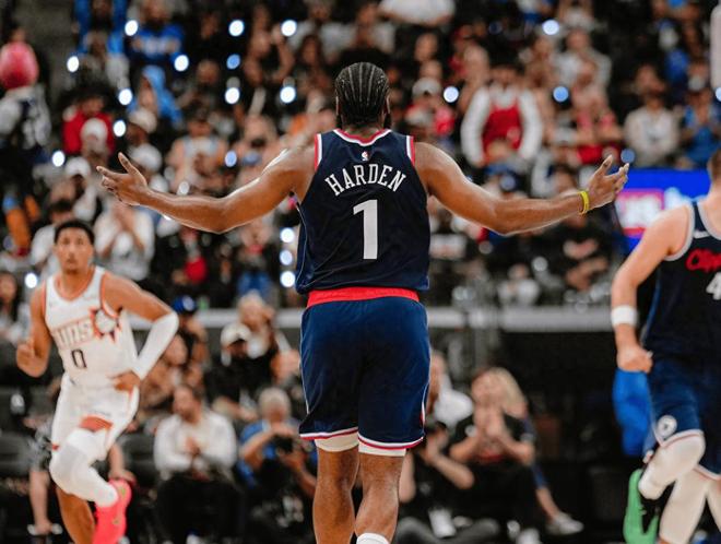 快船以129比102的比分在主场大胜太阳,拿下新赛季的首胜。哈登无疑是这场胜利的绝对核心,他将全队带入最佳节奏。首节刚开场,哈登便展现出惊人的手感,连续通过挡拆和持球单打撕开太阳防线,投篮精准得仿佛在进行投篮训练。第二节太阳试图发起反扑,试图将分差缩小到个位数,但哈登站了出来——他连续命中三记三分球,每一球都像手术刀般精准,直接浇灭了对手的反击火焰。上半场结束时,哈登已砍下26分,彻底奠定了快船的领先优势。